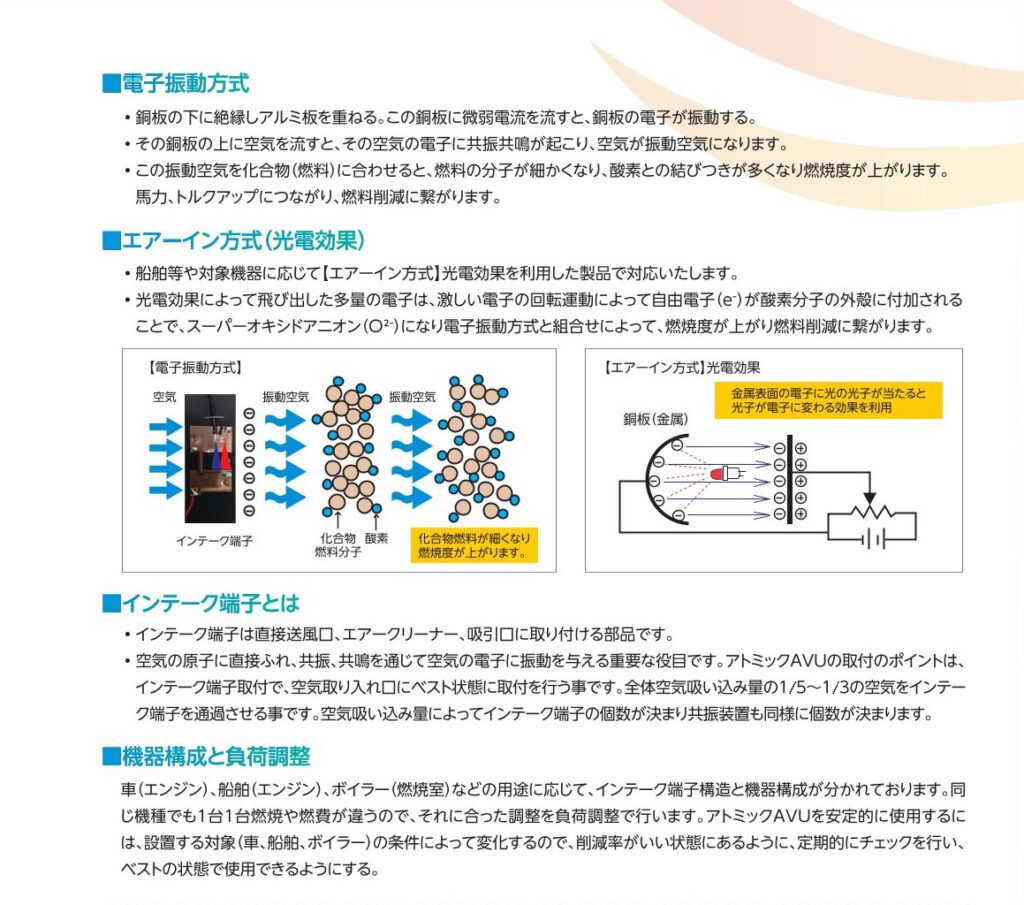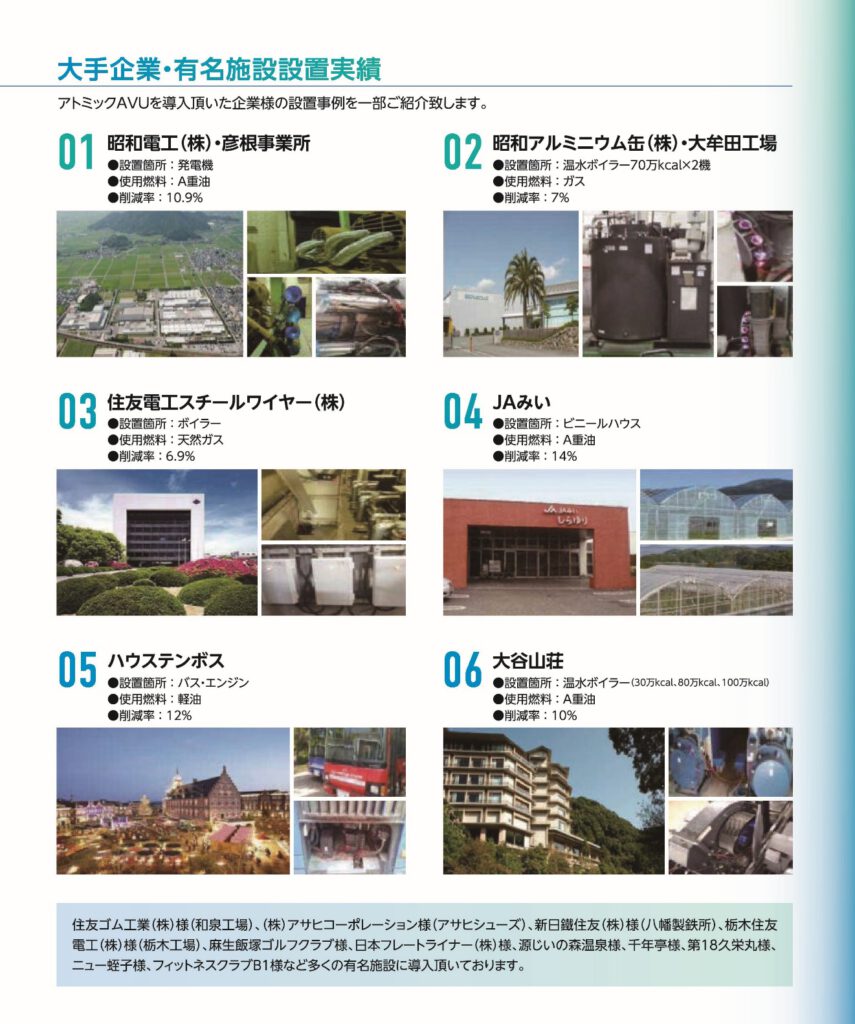 大型施設等所有の大型ボイラー、運送事業者様のトラック・タクシー等内燃機関向けに、あらゆる燃料を使うこれらの装置に対し、約7%から10%程度の燃料削減=燃費向上が可能です